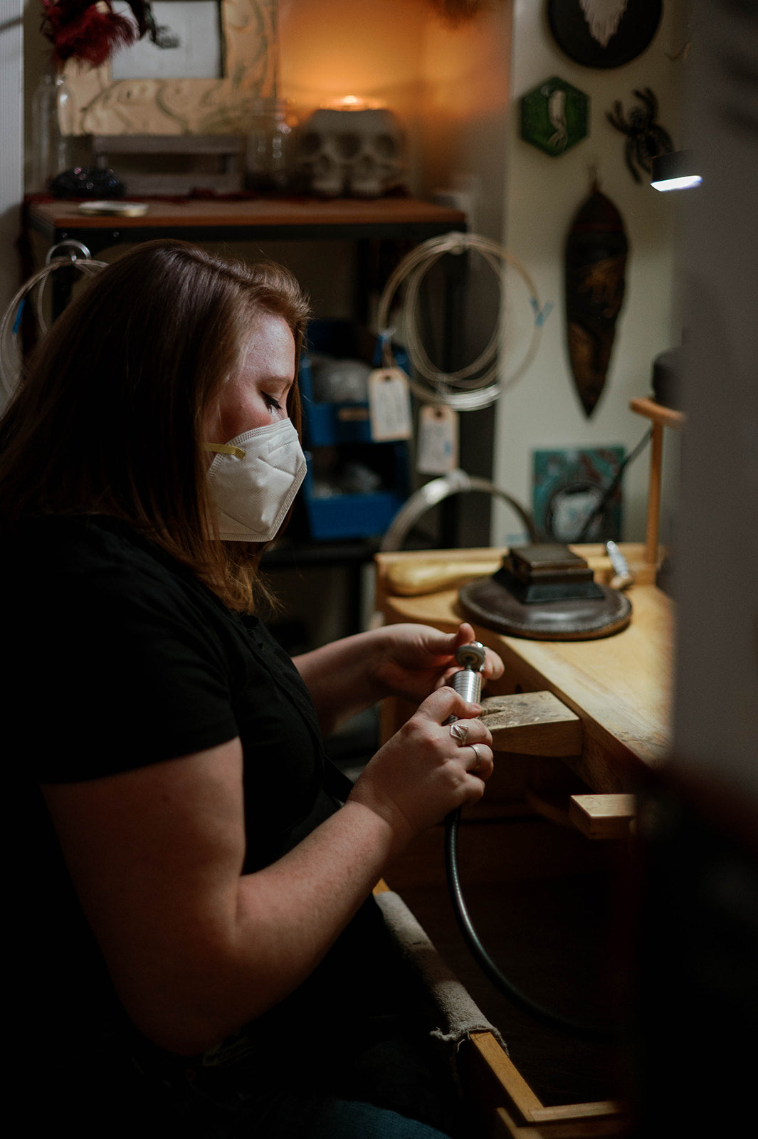 Maxi earned a BFA in Interdisciplinary Object Design from Towson University, concentrating in CAD and metal working. Using her passion for silversmithing she designs and fabricates all Maxi Cif Designs pieces out of her home studio.