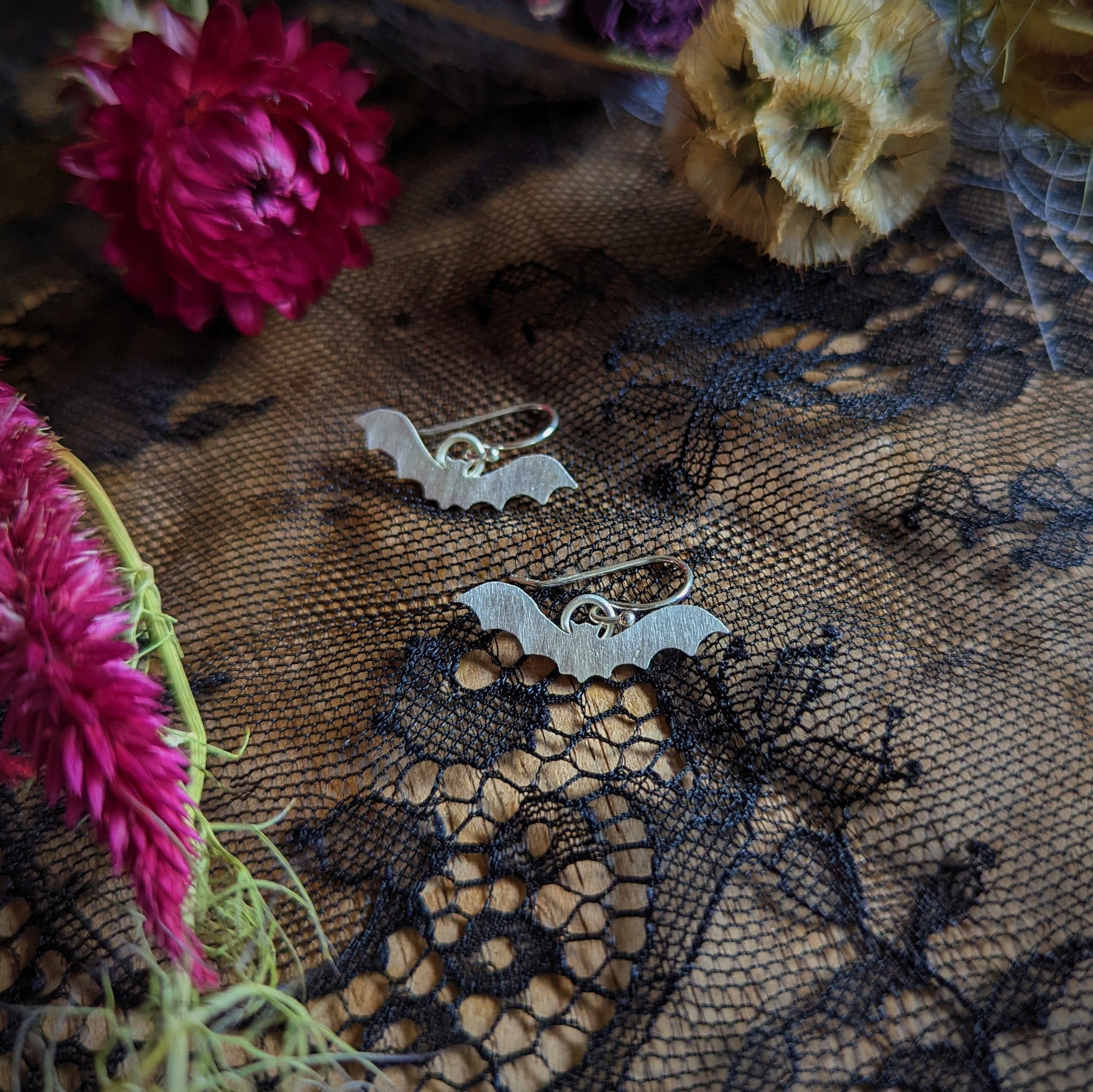 Add nocturnal charm to your collection with these Bat Earrings, hand-cut from sterling silver with meticulous precision. Using a fine 0.4 mm jeweler's saw, each bat is individually crafted to capture intricate wing details and character, making every pair distinctly unique. Suspended on comfortable sterling silver hooks, these lightweight earrings are perfect for all-day wear without fatigue. Whether you're celebrating the spooky season or embracing gothic style year-round, these whimsical pieces bring playful mystery to any outfit. Ideal for those who love nature-inspired jewelry with personality and artisanal craftsmanship.
