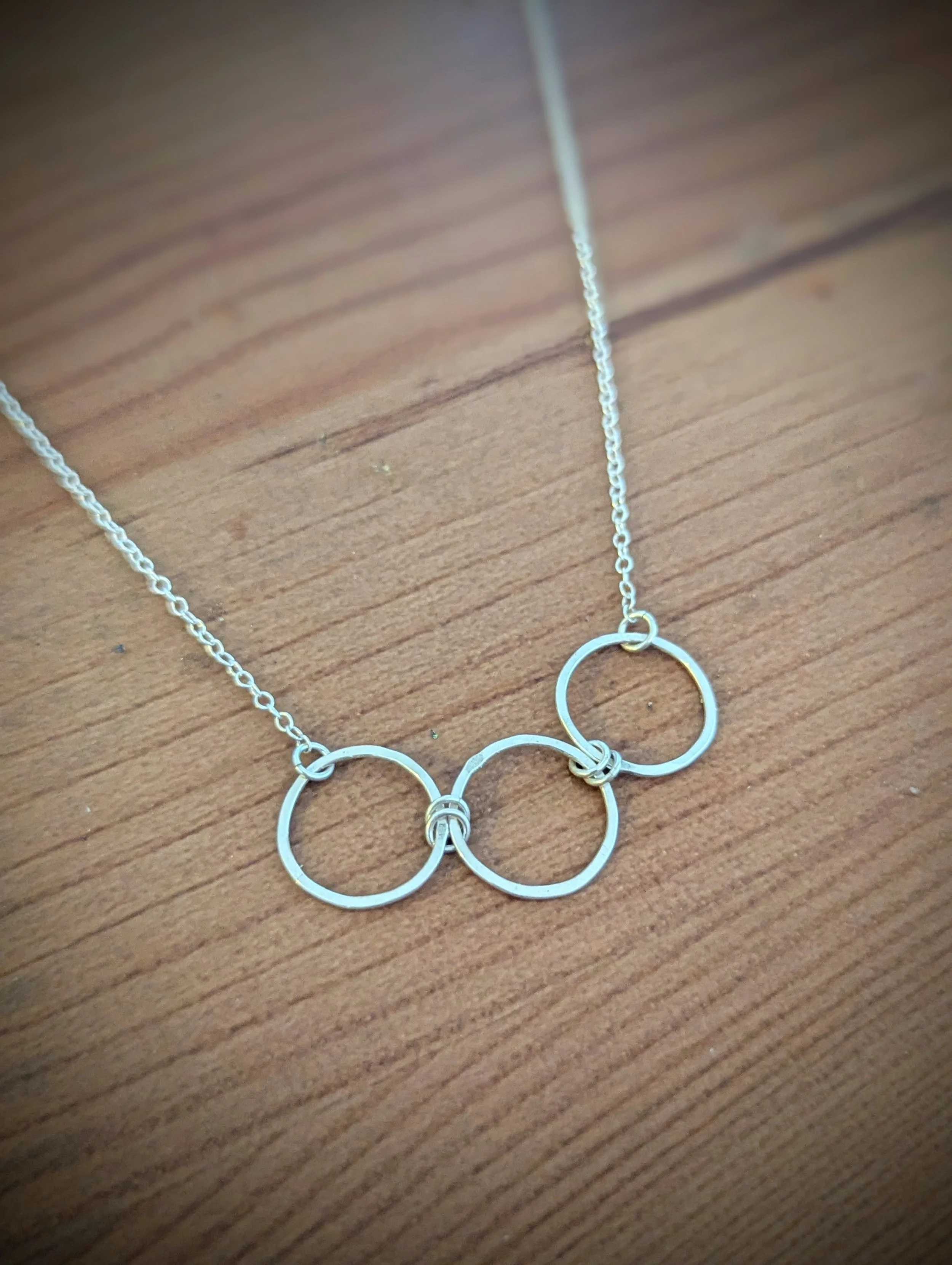 Learn to make your own sterling silver Full Moon Necklace with Maxi of Maxi Cif Designs! Each participant will learn to shape and texture their own set of 3 rings, connect and assemble your own necklace. All tools and materials will be provided.